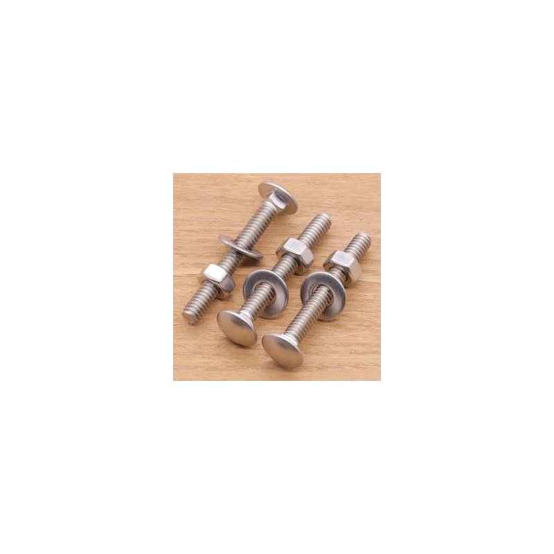 Carriage bolts are desgined with a big smooth round domed head and a square neck underneath the head. The big head helps eliminate the need for a washer and the square neck is self locking to eliminate spinning and the need for a driving tool. Carriage bolts are commonly used to fasten a wooden part to either wood or metal frame.