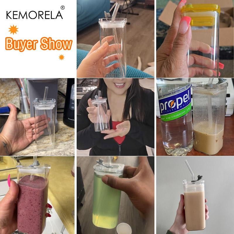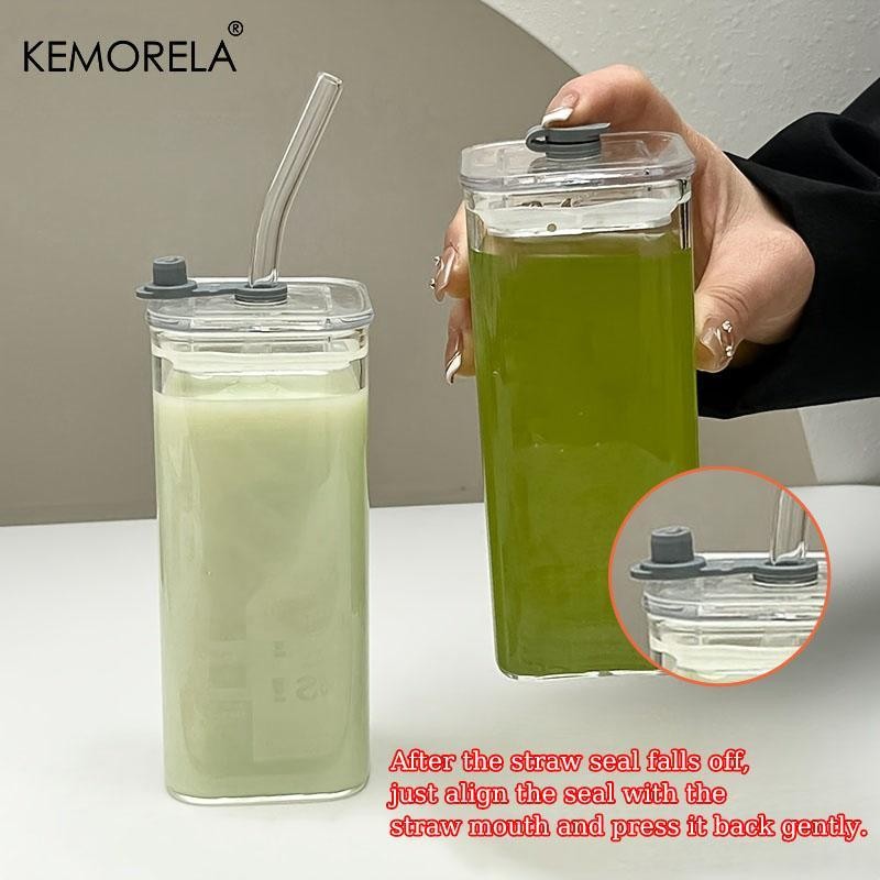 - 1/2/4/6 Counts Drinking Cup, High Borosilicate Thin Glass Rectangular Heat-resistant Glass Mug with Lid and Straw, Versatile for Hot Or Cold Beverages, Drinkware