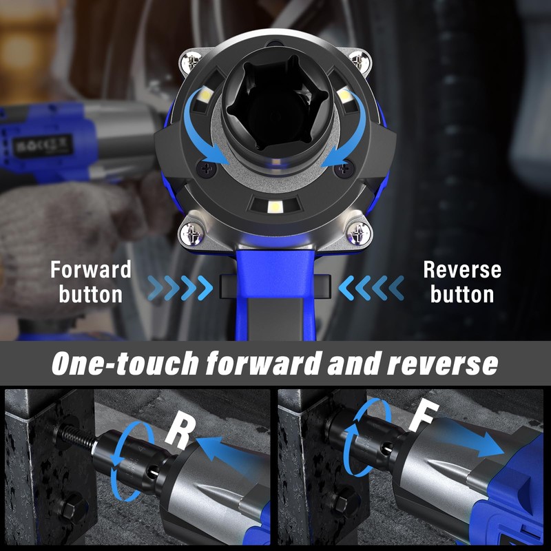 The electric wrench is equipped with a soft handle, trigger type LED light, one key switch for forward and reverse rotation, etc., which is considerate and thoughtful, providing you with a comfortable experience.