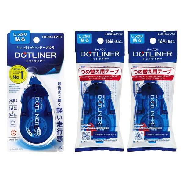 コクヨ テープのり のり ドットライナー しっかり貼る 強粘着 本体1個+つめ替え2個 タ-DM400-08-2R-L1