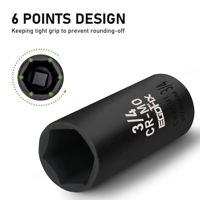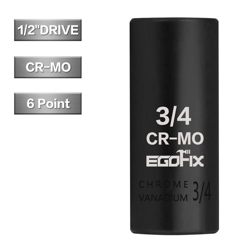 1/2" Drive Deep Impact Socket, 3/4 Inch SAE Socket, CR-MO 6 Point for Easy Removal of Axle Nut