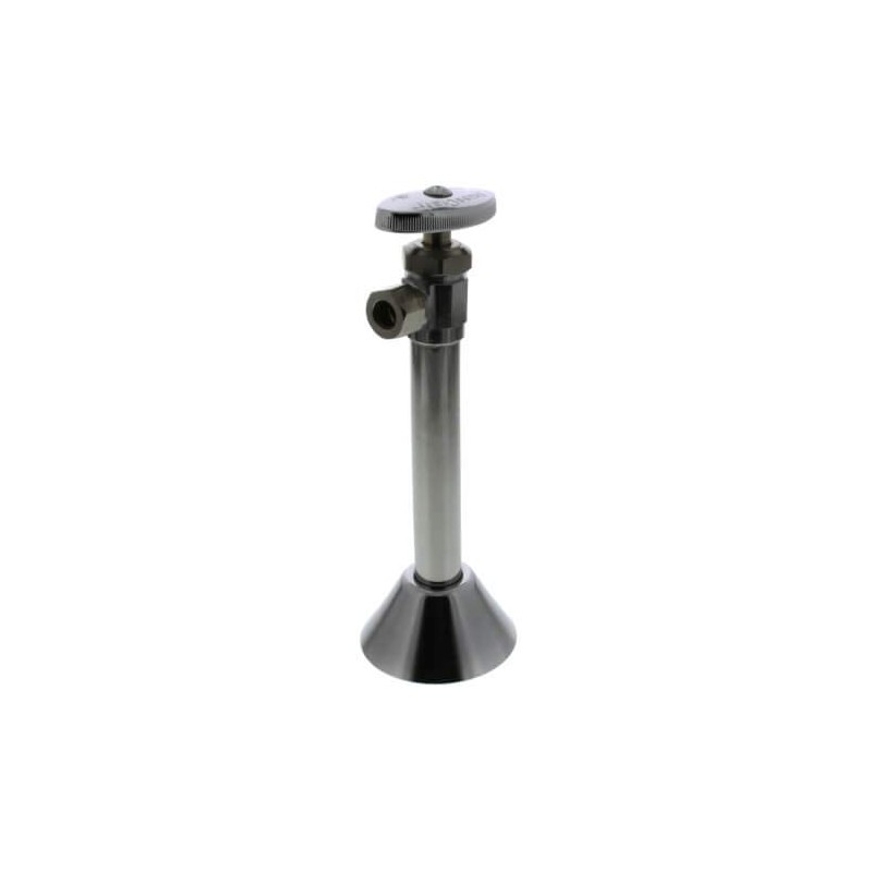 • 1/2" Nom. Sweat x 3/8" O.D. Compr. Angle Stop Valve w/ 5" Sweat Extension & Bell Escutcheon, Lead Free (Chrome Plated)