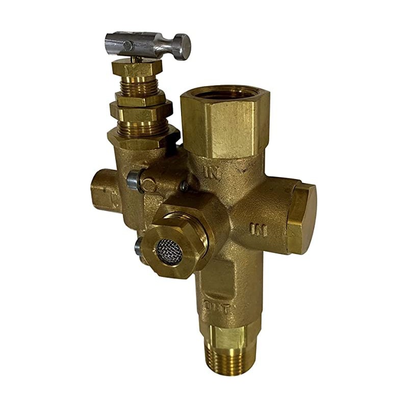 - 1/2" Female Top NPT Inlet X 1/2" Male NPT Outlet, Combination pilot valve, check valve, unloader valve all-in-one for 6.5HP Gas Powered Air Compressor Engines and Below.