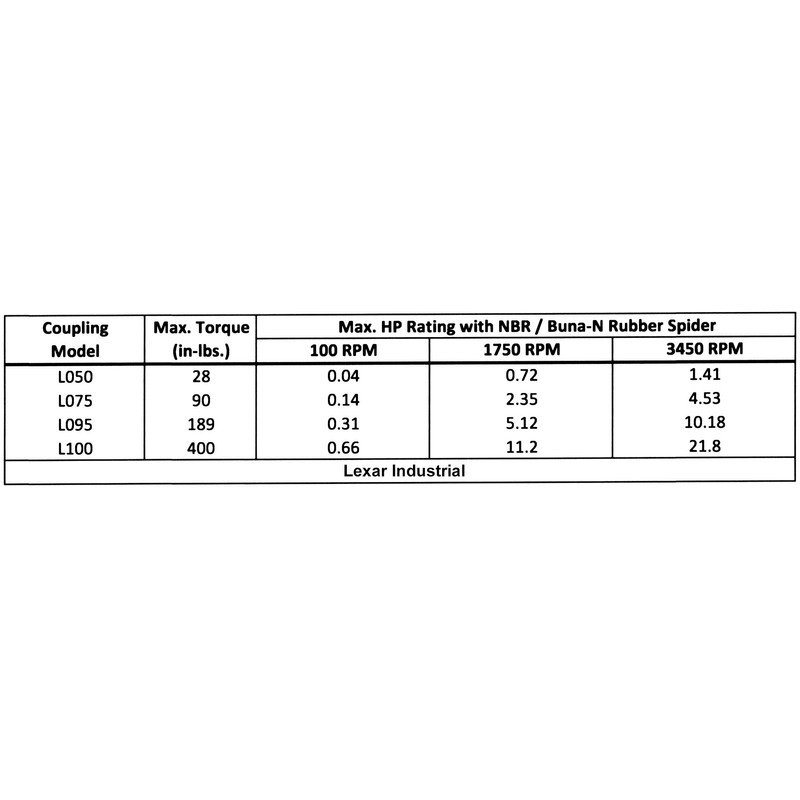 1/2" to 5/8" L095 Flexible 3-Piece L-Jaw Coupling Coupler Set & Rubber Spider