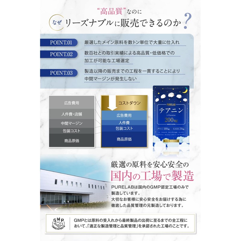 テアニン1日200㎎ グリシン1日480㎎ GABA1日51㎎ アロエベラ 30日分 エキナセア バレリアン サプリメント 国内製造 PURELAB