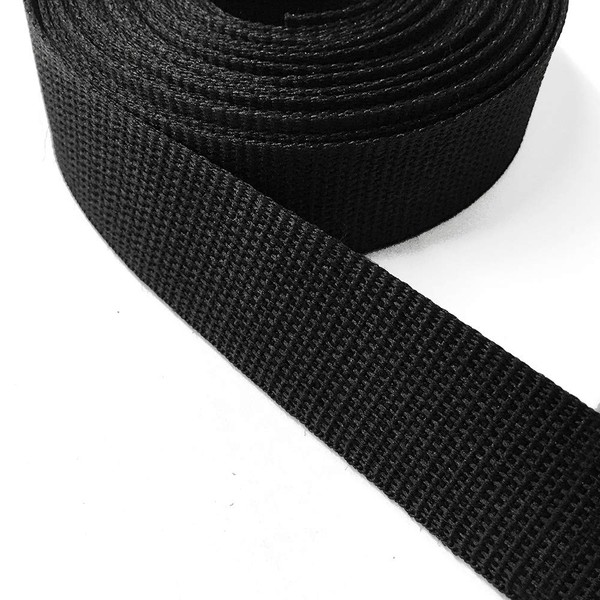 1" (25mm) Black Polyester Light Weight Webbing Trim by 5-Yards, SP-2724 (Black)
