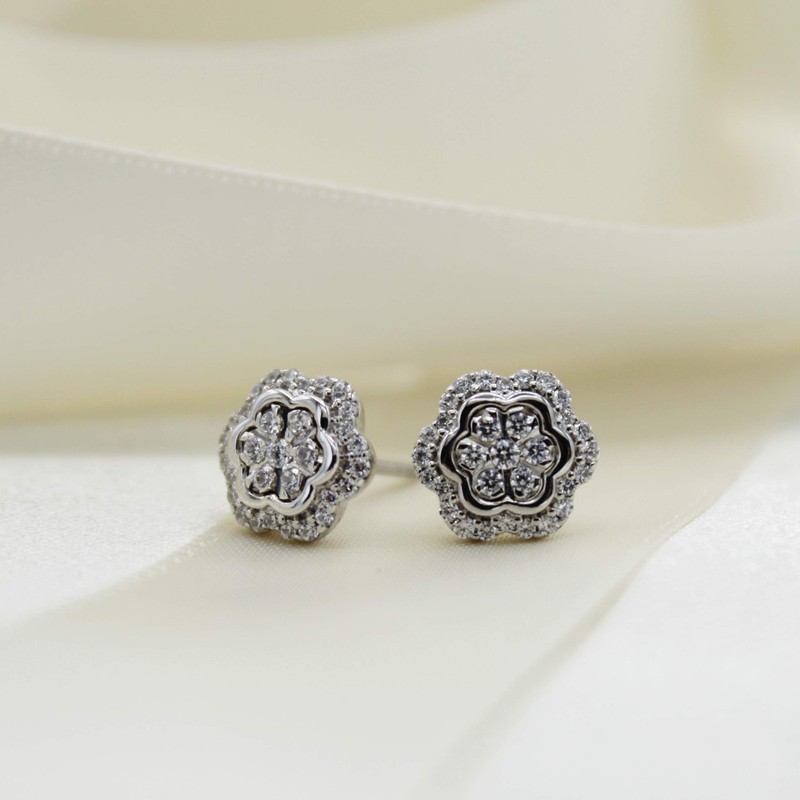 1/2Cttw Natural Diamond Cluster Stud Earrings Set in 925 Sterling Silver