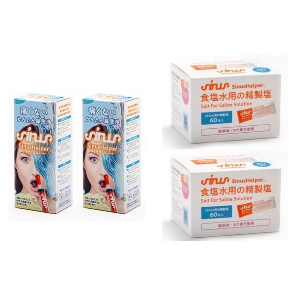- 鼻うがい サイナスヘルパー 鼻洗浄 はなうがい サイナスヘルパーセット鼻洗浄器(本体1本+専用塩3包)×2+ 専用塩(60包×2箱)