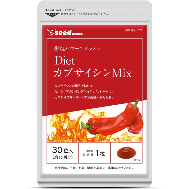 シードコムス カプサイシン サプリメント メリロート 高麗人参 (約1ヶ月分 30粒)