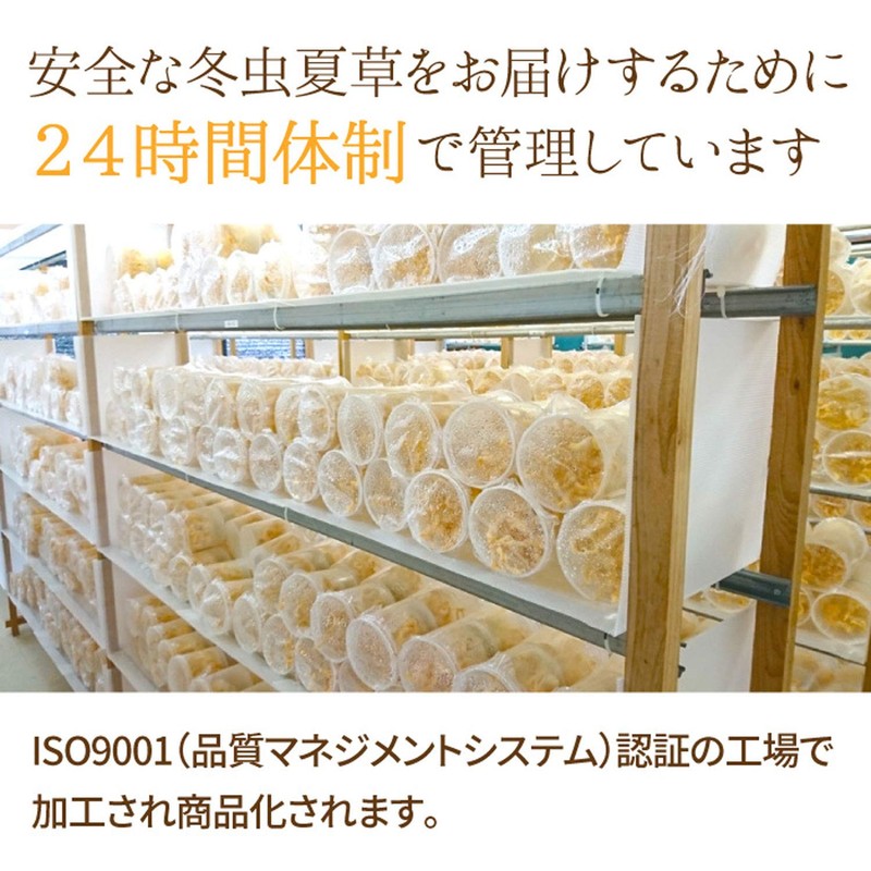 - 【人の目による徹底チェック体制】霊芝・冬虫夏草の店の「宮崎県産冬虫夏草」は、昆虫に菌を人工的に植え付けて発生させたものではありません。バイオテクノロジーと衛生的環境を駆使して育てられています。高品質の冬虫夏草を作るために、24時間体制で製造社員がしっかり管理し、1万菌床中にカビが1個あったら、周囲に飛散しないように除去する全数チェック体制を行っています。