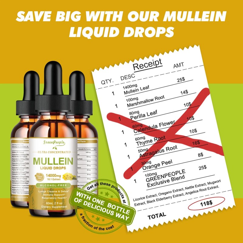 1-3Packs Mullein Drops for Lungs, Detox and Cleanse Mullein Extract Supplement