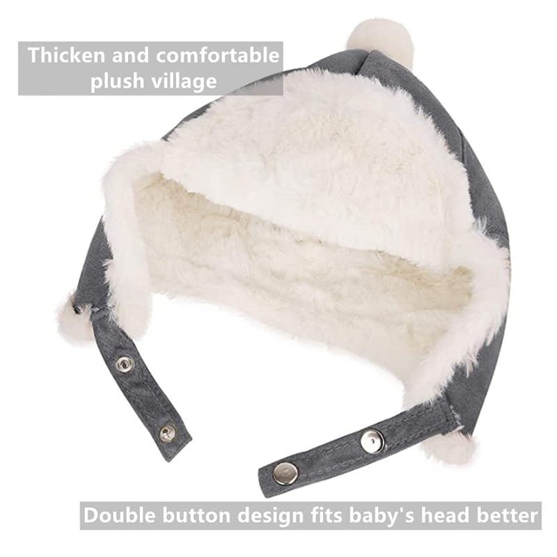 1-3Y Baby Winter Plush Hats Infant Ski Cap with Pompom & Earflap Warmer Windproof Beanies Caps Fleece-Lined Trapper Pilot Hat for Kids Toddler Girl Boy (Grey)
