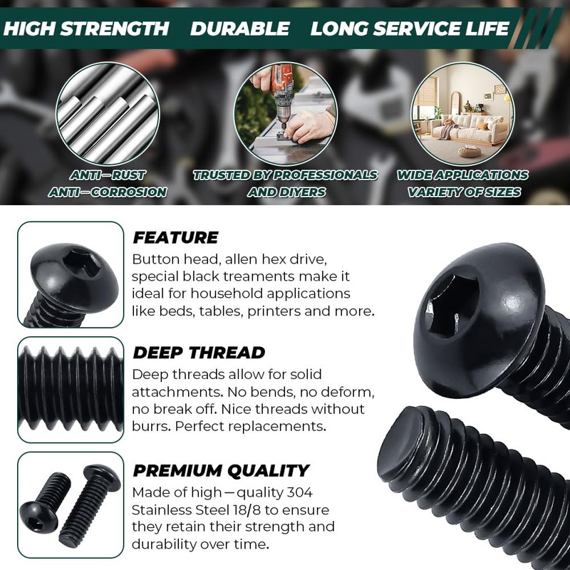 • Feature: The screws are precision threaded fasteners with an internal socket drive for installing in areas with limited side clearance; The internal hex drive requires a hex wrench which is included in the package for your convenience; Easy assembly and disassembly; Ease of cleaning; Beauty of appearance