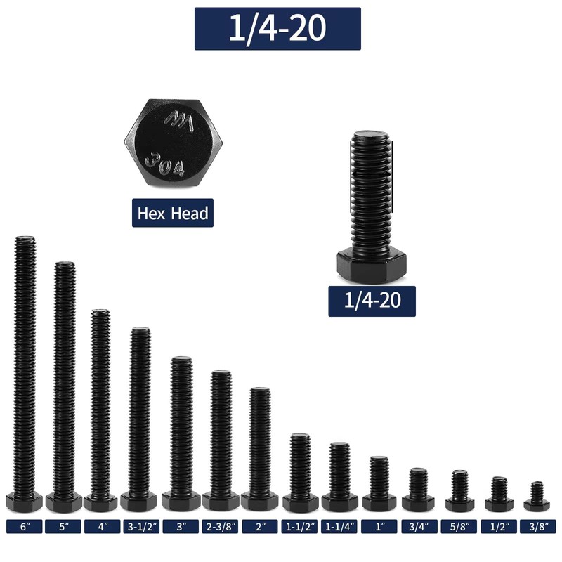 1/4-20 x 3-1/2" Hex Head Screw Bolt, 20Pcs 18-8 (304) Stainless Steel, Fully Threaded,Black Oxide by SG TZH