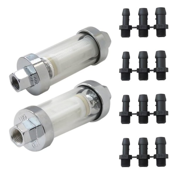 - - Wide Application:The stylish chrome and glass design multi-fit fuel filter suitable for all vehicles including cars, boats, motorcycles, tractors, classics, kit cars and many other applications.