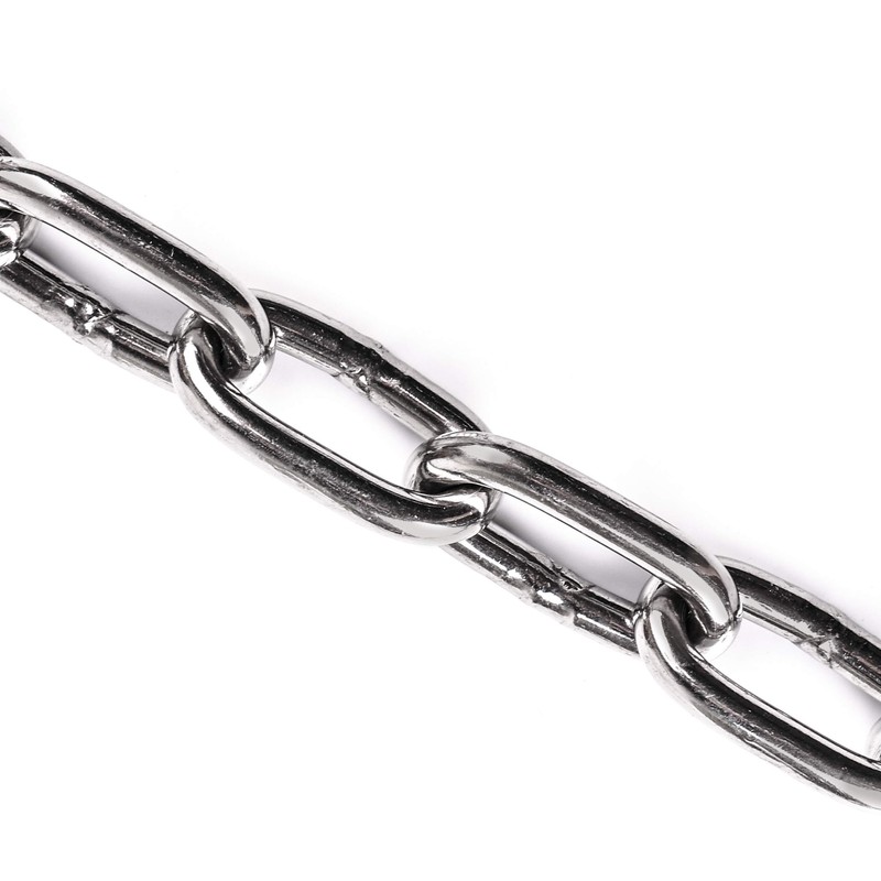 - Made of rust and corrosion resistant 304 stainless steel proof coil chain for use in a variety of application including security, padlocks, safety tow chain, tie downs, etc.