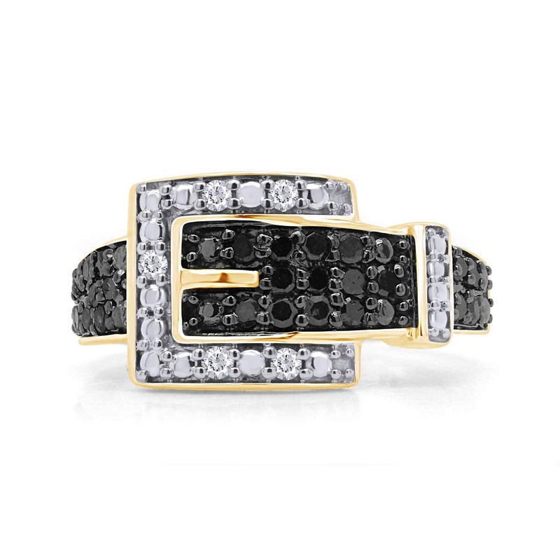 1/4 Carat Black & White Natural Diamond Anniversary Belt Buckle Ring In 14k Yellow Gold Over Sterling Silver (0.25 Cttw) Ring Size-6