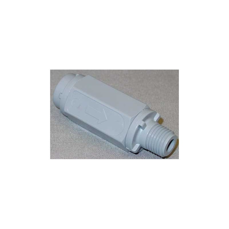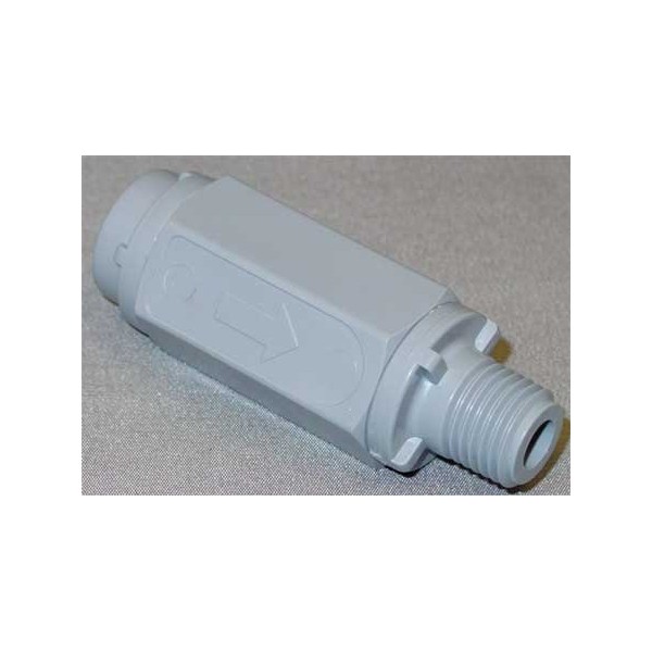 - Price For: Each Mounting Position: Vertical or Horizontal Spring Material: Stainless Steel Max. Water Pressure: 125 psi Item: Ball Cone Spring Check Valve Max. Temp.: 140 Degrees F Size: 1/4" Length: 2-29/32" Seat Material: Gray PVC Width: 1" Material of Construction: Gray PVC Cracking Pressure: 1 psi Connection Type: FPT x MPT Sub-Category: PVC