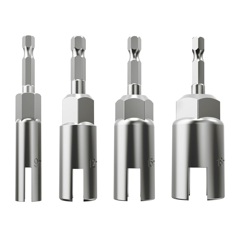 - SPECIFICATIONS:4 Pack 4 Size 1/4 Inch Shank fits most powered corded or cordless drills, Hexagon socket size: 9mm, 12mm, 15mm, 18mm, 4 sizes, 4types Slot cutout is 3.7mm (0.14 inch), 5mm (0.19 inch), 6.2mm (0.24 inch),8.2mm (0.32 inch).