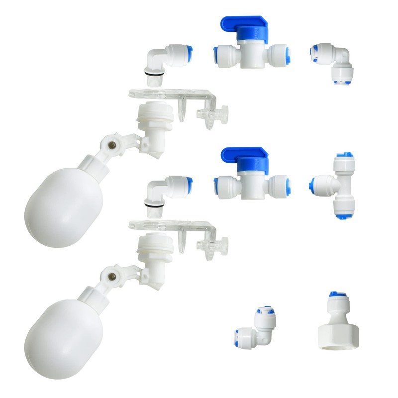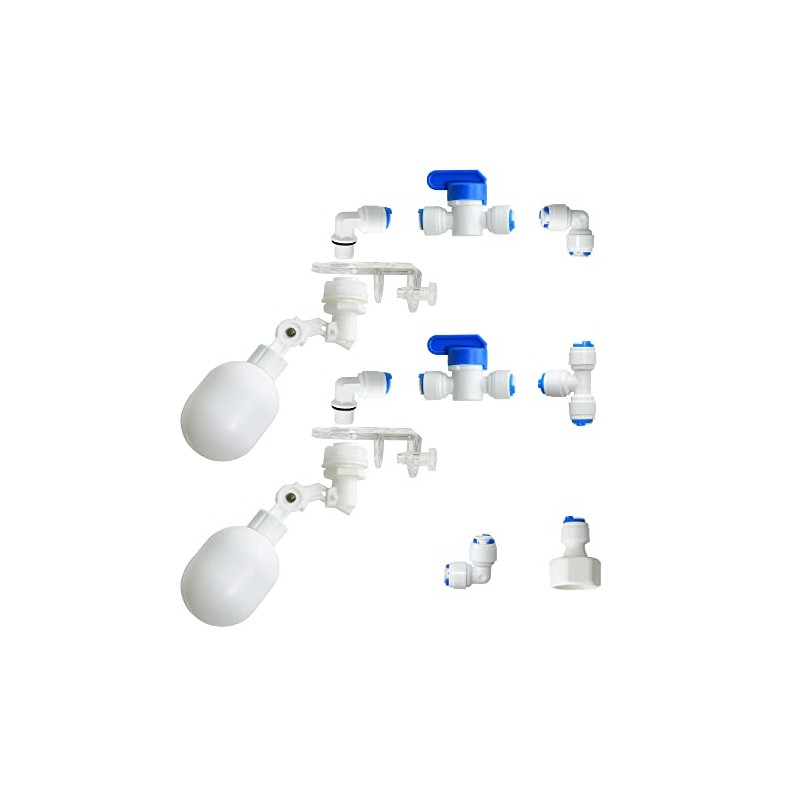 1/4 inch Plastic Adjustable Tube Float Valve Kit for Aquarium Water purifiers , Auto Water Filler Controller Auto-top-Off System, RO Water Reverse Osmosis System (2 Float + 10 Connect)