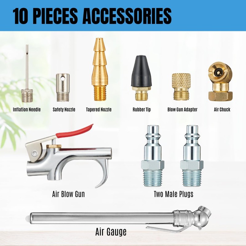 • 13 pieces air tool accessories kit, include all necessary air tools and air fittings, perfect for DIYers and professionals alike.