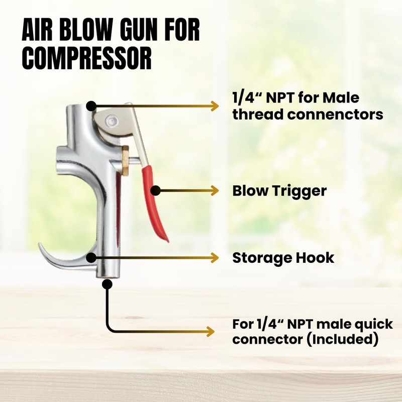 • Equipped with a convenient 1/4'' quick-connect fitting, this accessory seamlessly integrates with your air compressor for efficient and hassle-free operation.