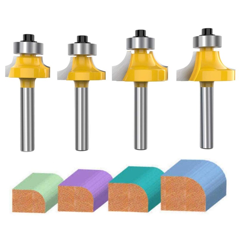 - Package include: 4 Pcs 1/4 Inch Shank Versatile Round Over Edging Router Bit Set, 1/2", 3/8", 1/4", 1/8" Radius