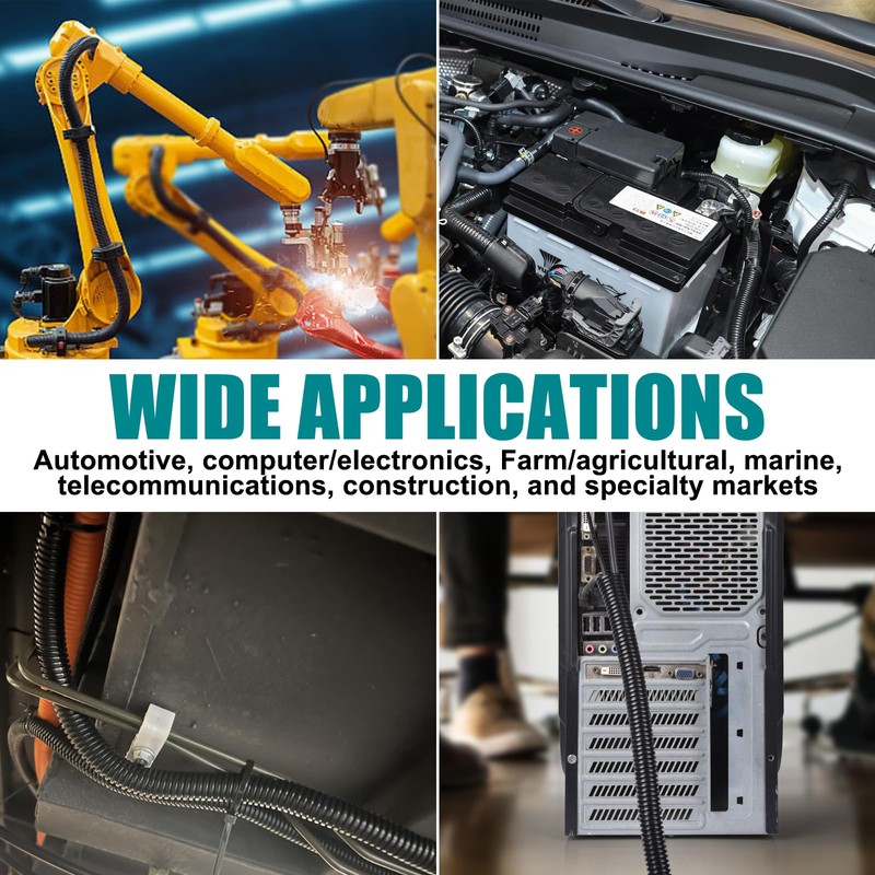 - High Quality: Our wire loom is made of 100% new and high-quality polyethylene. Wire protector tubing operating temp (degree F.):-94 to 257; Can be used to protect electrical wiring in industries, automotive engine compartment wiring, home, and office.
