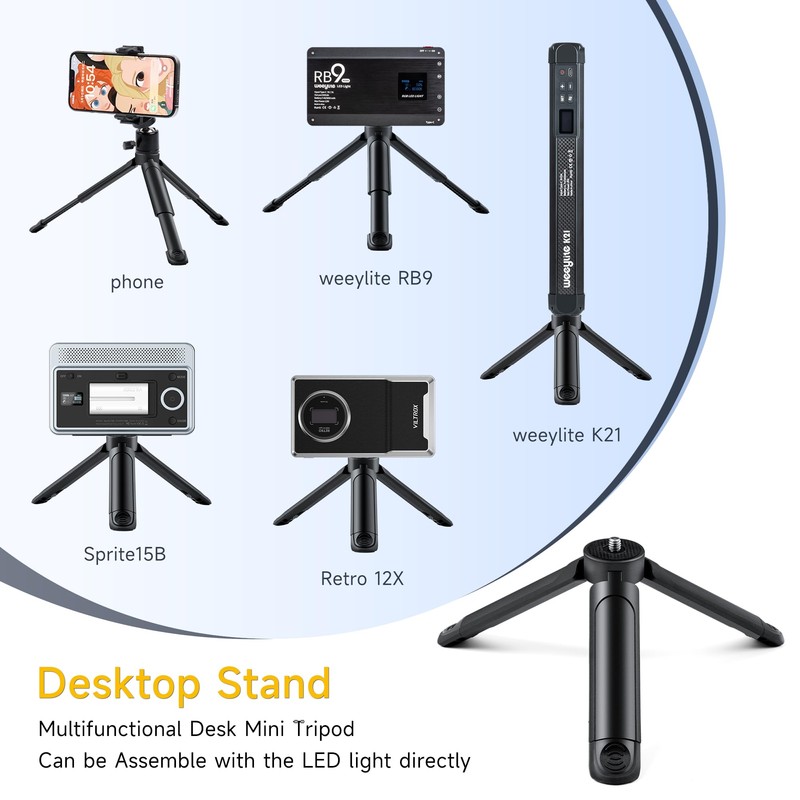 1/4 Mini Tripod, C01 Pro Tabletop Desktop Stand Compact Tripod with 1/4" Screw for weeylite K21 Stick Light, Retro 12X Photo Light,Camera,Smooth 4,Osmo Mobile,Vimble 2,Gimbal Handle Grip Stabilizer