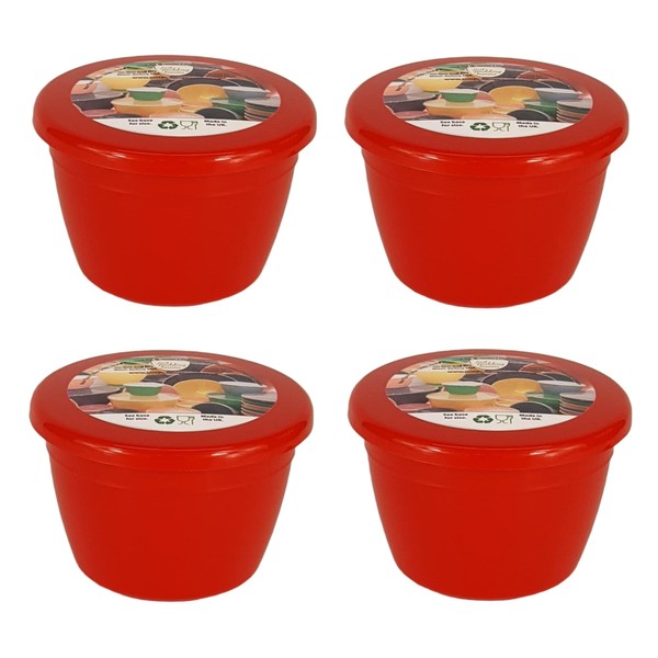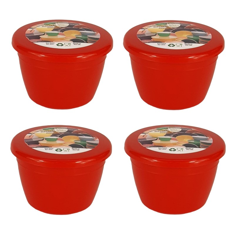 1/4 Pint Small Pudding Basin and Lid Red 4 Pack 0.25 pt Plastic Steam Pudding Bowls