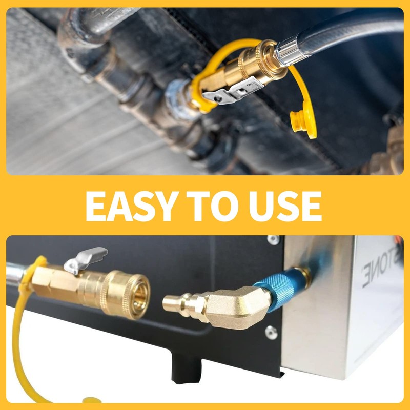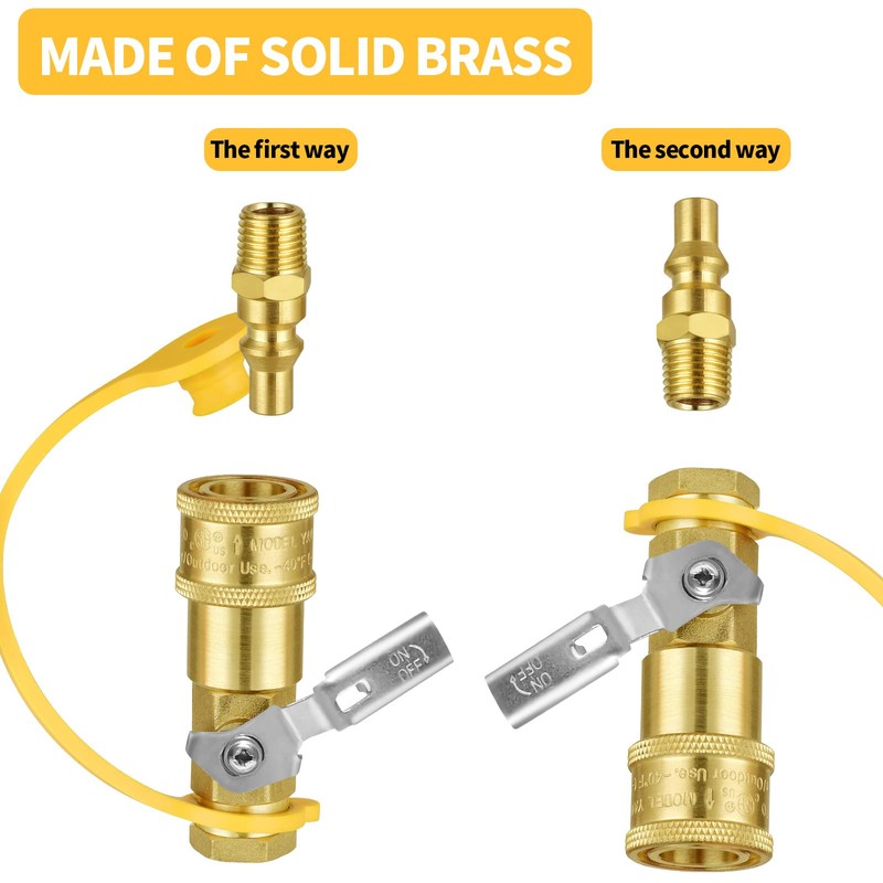 - 【Safe Use】The adapter automatically shuts off flow when you disconnect the hose. The center hex nut provides solid grip while installing, providing safe connection and leak prevention.