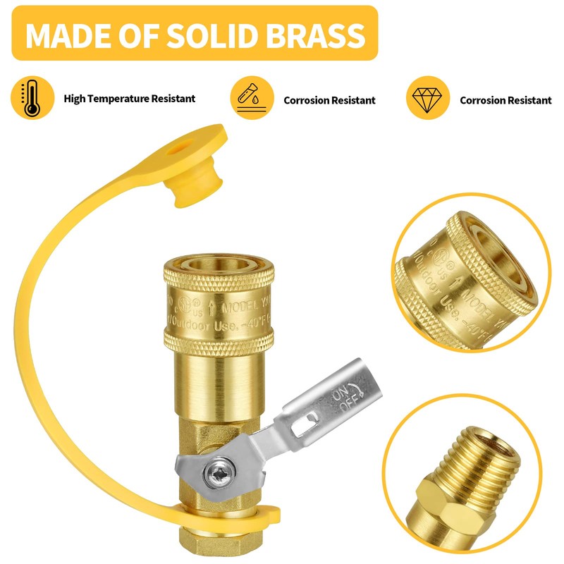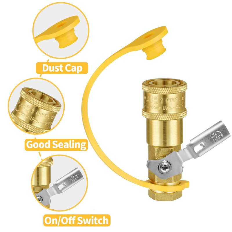 1/4" RV Propane Quick Connect Adapter, Propane or Natural Gas Quick Connect or Disconnect Kit, Shutoff Valve and Full Flow Plug, 1/4" Female NPT&1/4" Male NPT, for Camping BBQ