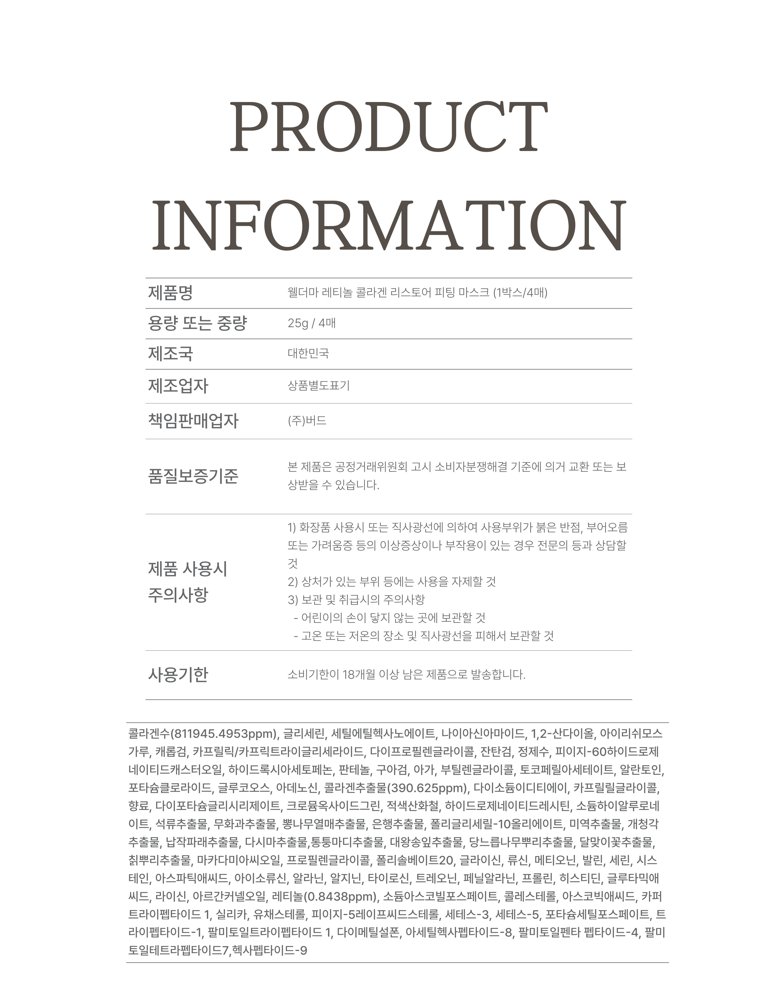 웰더마 레티놀 콜라겐 리스토어 피팅 마스크 (1박스/4매)
