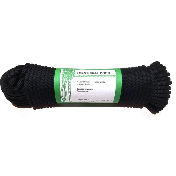 (#8) 1/4" X 100' Black Cotton Solid Braided Theatrical Sash Cord Rope