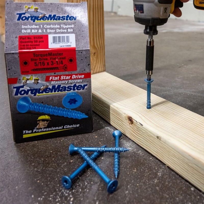 - DRIVER & DRILL BIT INCLUDED: The proper driver bit and carbide-tipped masonry drill bit are included in each box of TorqueMaster screws.
