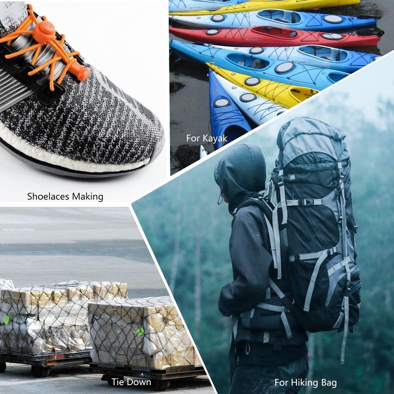--You can use this cord to restring the tie-downs on your kayaks, strap down a tarp, indoor home daily use, and outdoor exercise fitness.