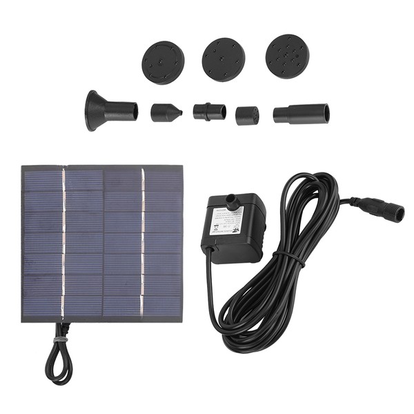 1、Solar powered, no extra power needed, energy-saving and environmentally friendly. 2、Starts working in 3 seconds once exposed to sufficient sunlight. Please make sure the solar panel is not shadowed and keep the filter intake on the bottom clear of debris. 3、There are 5 types of sprinkler heads for different water flows and water heights. 4、Perfect for bird bath, fish tank, small pond, garden decoration, water circulation for oxygen. 5、Easy to install, submersible water pump with 2 sucking disk, steady support for the pump. 6、The water pump is equipped with water inlet net cover to prevent impurities from entering the pump body.