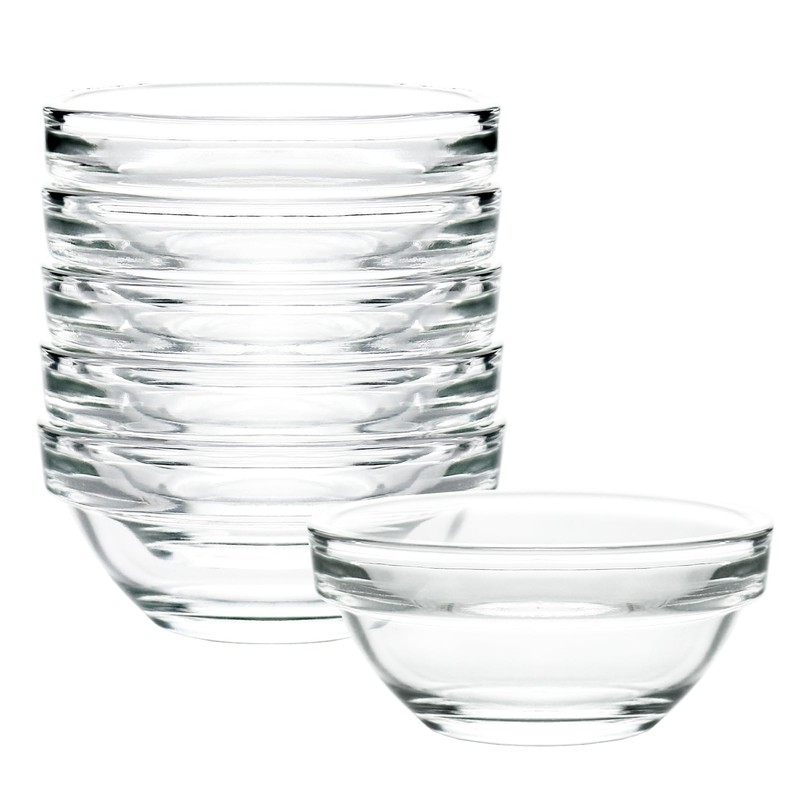 1.5 oz Clear Glass Bowl, Mini Prep Dish for Salt and Spices, Dishwasher and Microwave Safe, Stackable, Set of 6