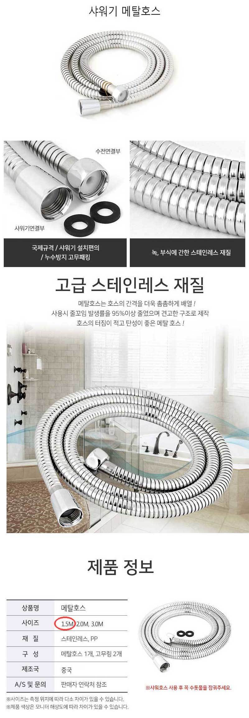 1.5M Metal Shower Hose for Bathroom & Balcony Shower Hose