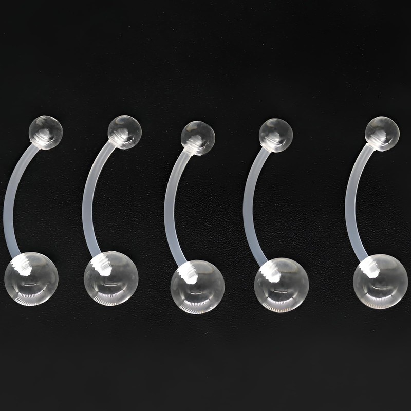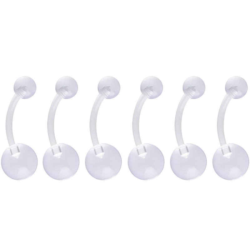 1.6 mm(14 g) Clear Piercing Retainer 6 pcs Flexible Plastic Belly Button Ring...
