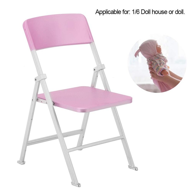 1/6 Scale Dollhouse Miniature, 8.5 x 9 x 17.5 cm, Furniture Folding Chair for Dolls Action Figure(Rose Red)