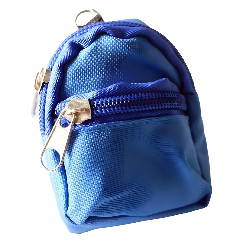 1/6 Scale Mini Doll Zipper Backpack, Realistic School Bag Model for Dolls, Adjustable Shoulder Straps, Pockets and Keychain