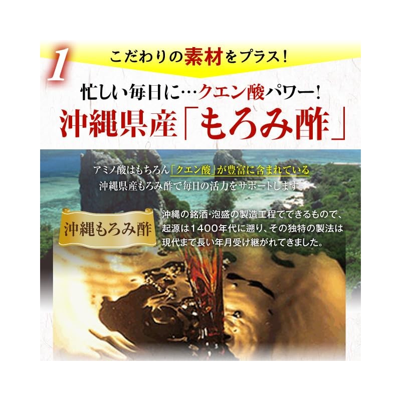 - 黒酢をつくる際に壺の底に溜まる「黒酢もろみ」はわずかしかとれない希少なもので、 これを粉末にした「黒酢もろみ末」には液体黒酢に比べ約10倍(※)ものアミノ酸が含まれています。(※)メーカー調べ
