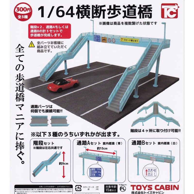 1/64 Pedestrian Bridge [Set of 3 Types + 1 Staircase Set (2 Stairs, 1 Passage A, 1 Passage B)] Gachagacha Capsule Toy
