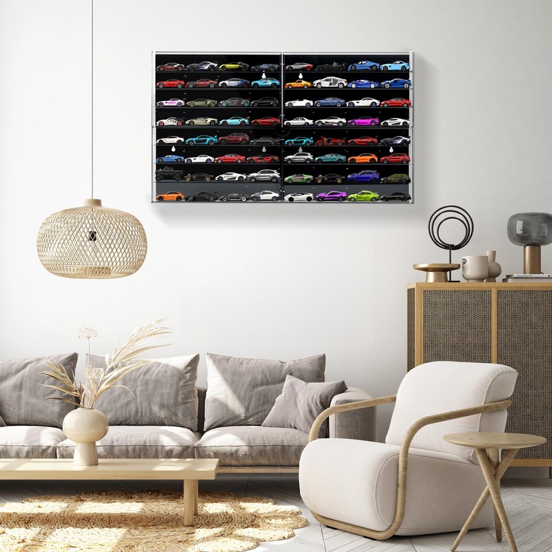- High-Quality Materials – Works great to display 1/64 scale diecast model toy cars, the outside dimension is 27.6''x15.7''x 1.8'', this model car display case comes with a durable acrylic frame.