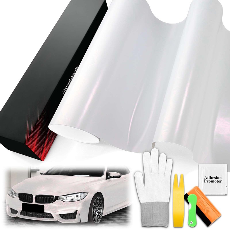1.6FTx5FT PET Marble Pearl Matte White Red Vinyl Wrap Auto Car Sticker Decal Film Sheet Bubble Free Air Release Technology with Tool Set
