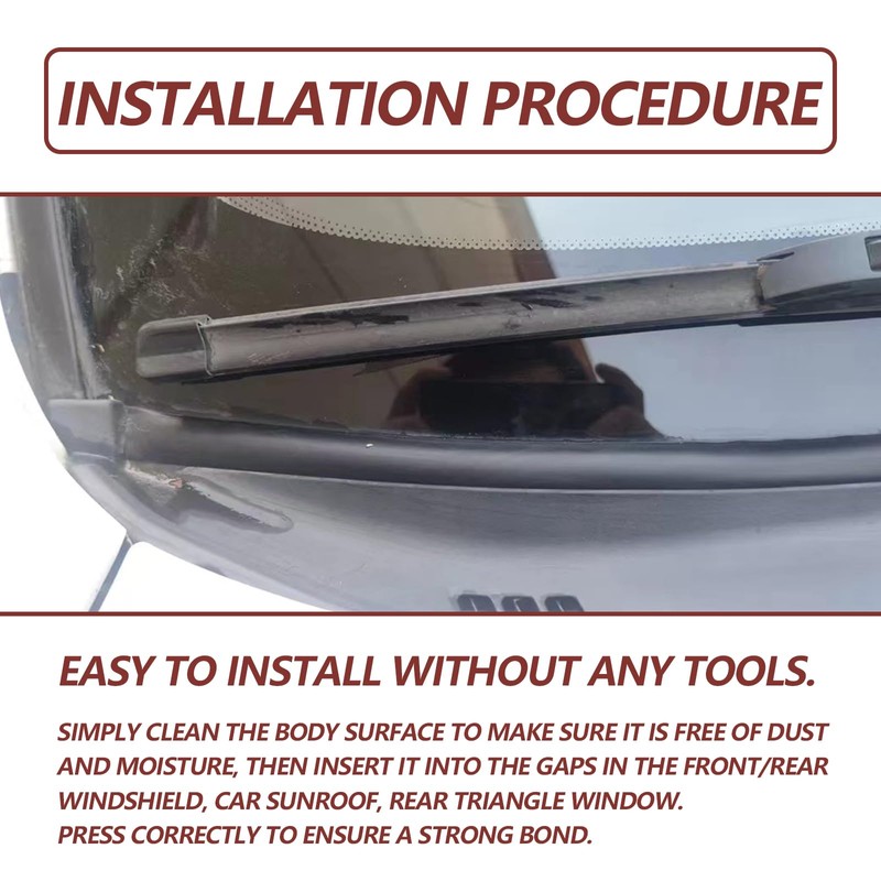 - Easy to Install: The installation of car sealing strips is convenient, Just clean the car body surface to make sure there is no dust and moisture, adhesive tape to stick it on the front/rear windshield, Car sunroof, and rear quarter window. And press properly to ensure strong bonding. Avoid washing your car for three days post-installation for optimal.