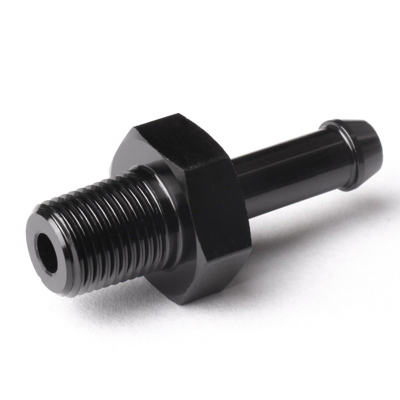 1/8" NPT Male to 1/4" Hose Barb Aluminum Adapter Fitting - Black Anodized Straight Connector