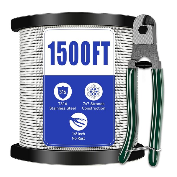 IFYOGD - 1/8 Stainless Steel Cable, Cable Railing for Stainless Steel Cable, 7x7 Strands Construction with Cutter for Cable Railing System 1500FT. 🚀 Best-selling product with thousands of satisfied customers. Robust construction and attention to detail. 🔥 High demand - Limited stock. Ideal for those looking for the best in quality and style. Authentic product with total satisfaction guaranteed. Don't miss out - get yours now and take advantage of this unique opportunity!