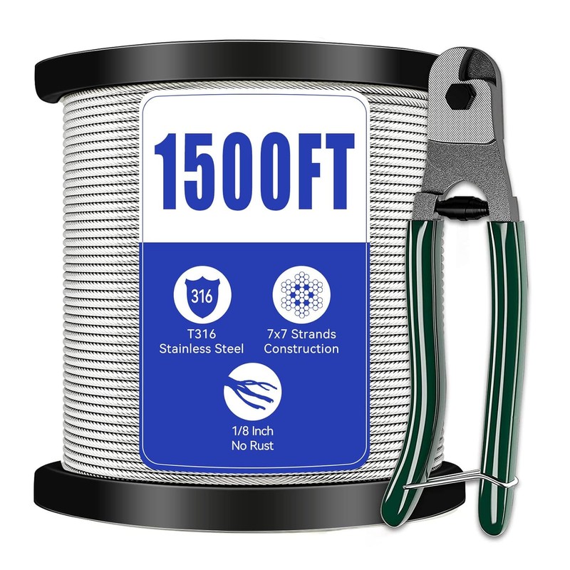 1/8 Stainless Steel Cable, Cable Railing for Stainless Steel Cable, 7x7 Strands Construction with Cutter for Cable Railing System 1500FT